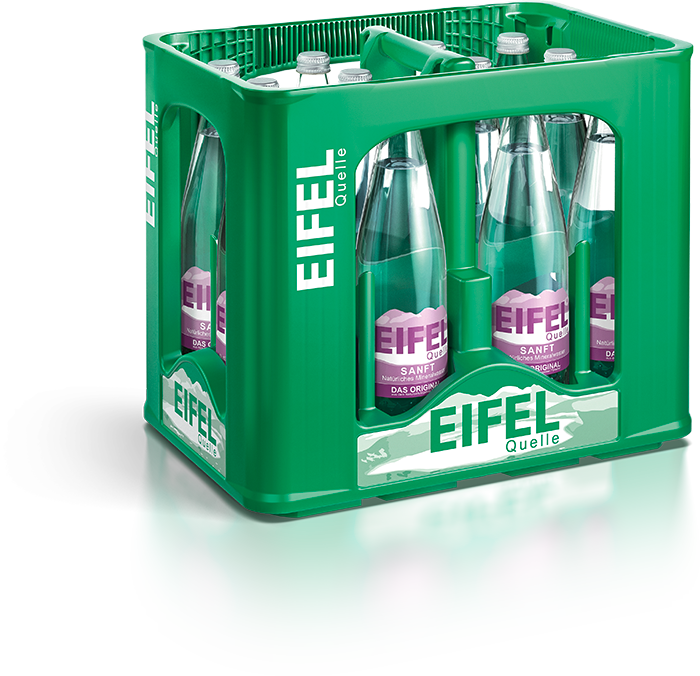 Natürliches Mineralwasser ganz leicht mit Quellkohlensäure versetzt, enteisent. EIFEL-Quelle Sanft, abgefüllt am Quellort, aus der EIFEL-Quelle, Andernach.